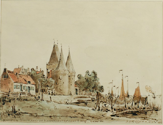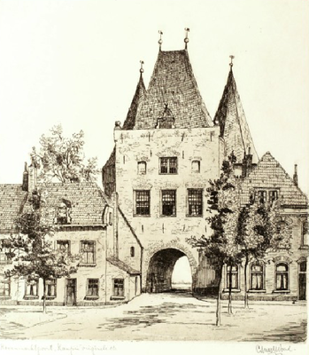 © Remy Steller. Op de website staan de 20 stadspoorten van Kampen na de uitbreiding in 1462, lange tijd bleef de ommuring van de stad intact, pas in de 19de eeuw zou ze worden ontmanteld toen de muren vanuit militair oogpunt geen nut meer hadden. De indrukwekkende Koornmarkts-, Cellebroeders- en Broederpoort en de restanten van de stadsmuur langs de IJssel houden de herinnering aan het verleden nog altijd levend. Alle stadspoorten worden genoemd en er is zoveel als het mogelijk is getracht afbeeldingen van de in de 19de eeuw verdwenen poorten te plaatsen. Gelegen aan de IJsselkade tegenover de Sint Nicolaaskerk. Gebouwd in de tweede helft van de veertiende eeuw. Oorspronkelijk een rechthoekige toren met twee verdiepingen boven de doorgang. Eind veertiende eeuw uitgebreid met twee grote torens aan de voorzijde. De ruimten boven de poortingang werden onder andere gebruikt als gevangenis en als huisvesting voor de soldaten. In 1840 werd de poort witgekalkt.